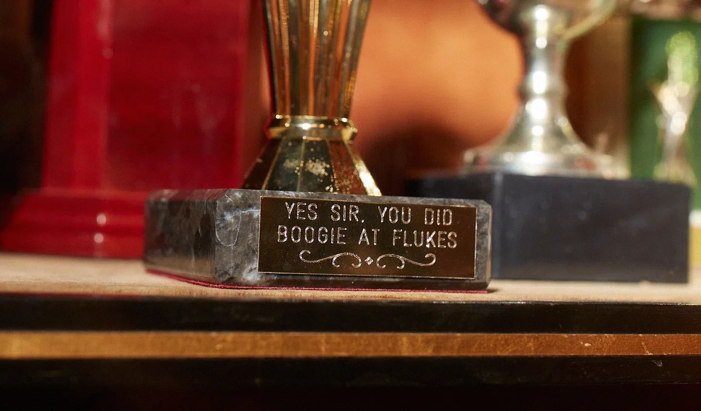 Every touchpoint in the venue is considered, right down to the artwork on the walls and even the engravings on what appear to be collected trophies on display. It’s these easter egg details that help Flukes feel like a complete world.